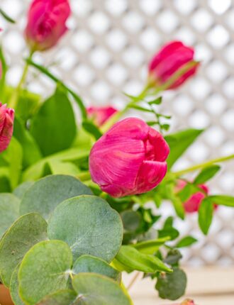 ¡Déjanos sorprenderte con las mejores plantas del momento! Dinos el presupuesto que deseas gastar y nosotros diseñaremos el arreglo floral. *Este producto sólo esta disponible para recogida en tienda o reparto en la provincia de Castellón. Ver localidades en las condiciones de envío*PORTA BOUQUET TULIPANES