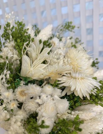 Puedes ponerlo en agua dentro de un jarrón, en algún cesto o para decorar una mesa bonita. Si esta en agua te aguantara mucho tiempo, cambiándola cada dos o tres días. Sin ella, se secara todo el material pero seguirá luciendo igual de bonito.